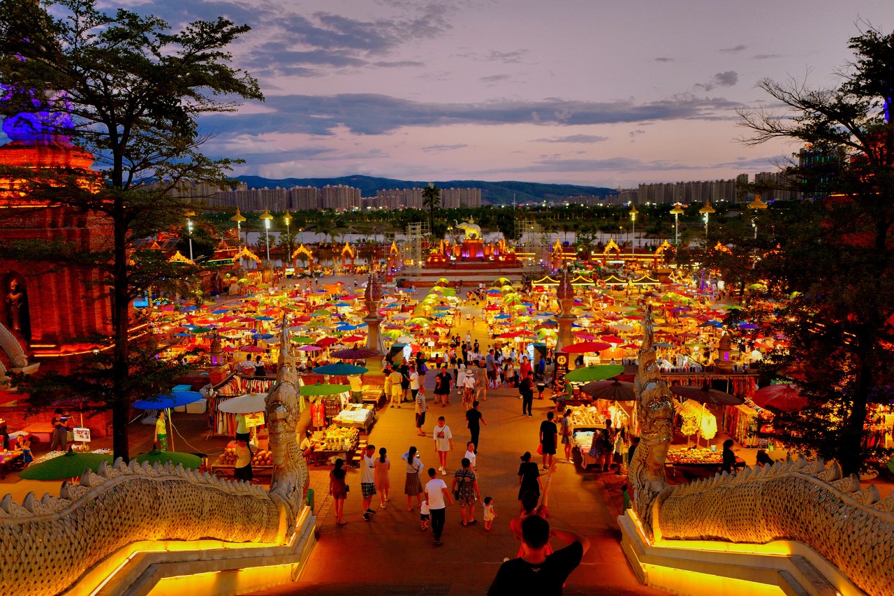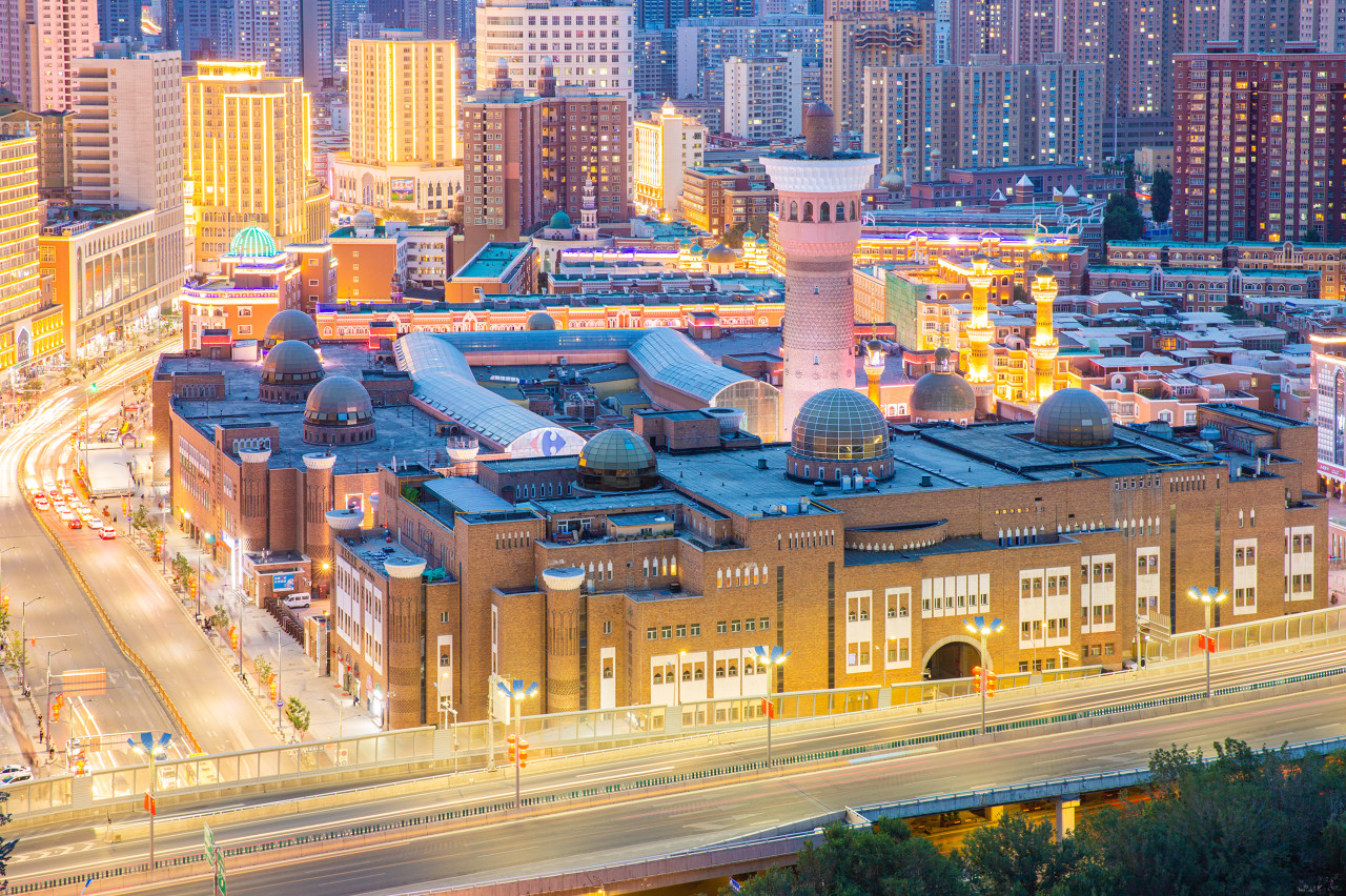 En Urumqi,el Gran Bazar Internacional se transforma al anochecer en un bullicioso centro de vida social.