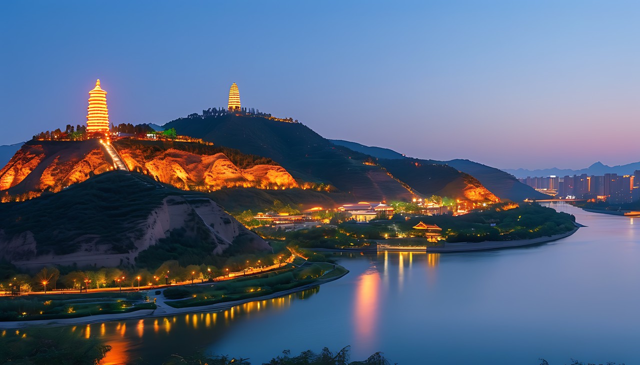 La Montaña Baota,con su pagoda de nueve pisos,es el símbolo espiritual de Yanan.Subir a la cima ofrece una vista panorámica de la ciudad y el río Yan. Por la noche,la pagoda iluminada crea un paisaje impresionante contra el cielo oscuro.
