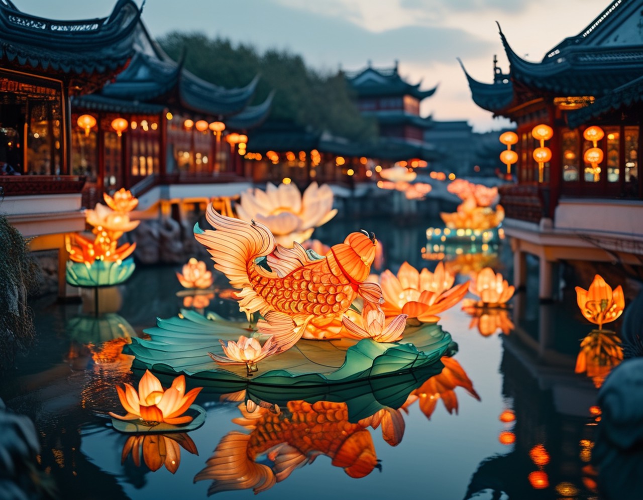 Ambiente y arquitectura: El lugar reproduce el esplendor de la dinastía Tang con sus edificios de estilo tradicional, brillantes faroles rojos y esculturas temáticas.