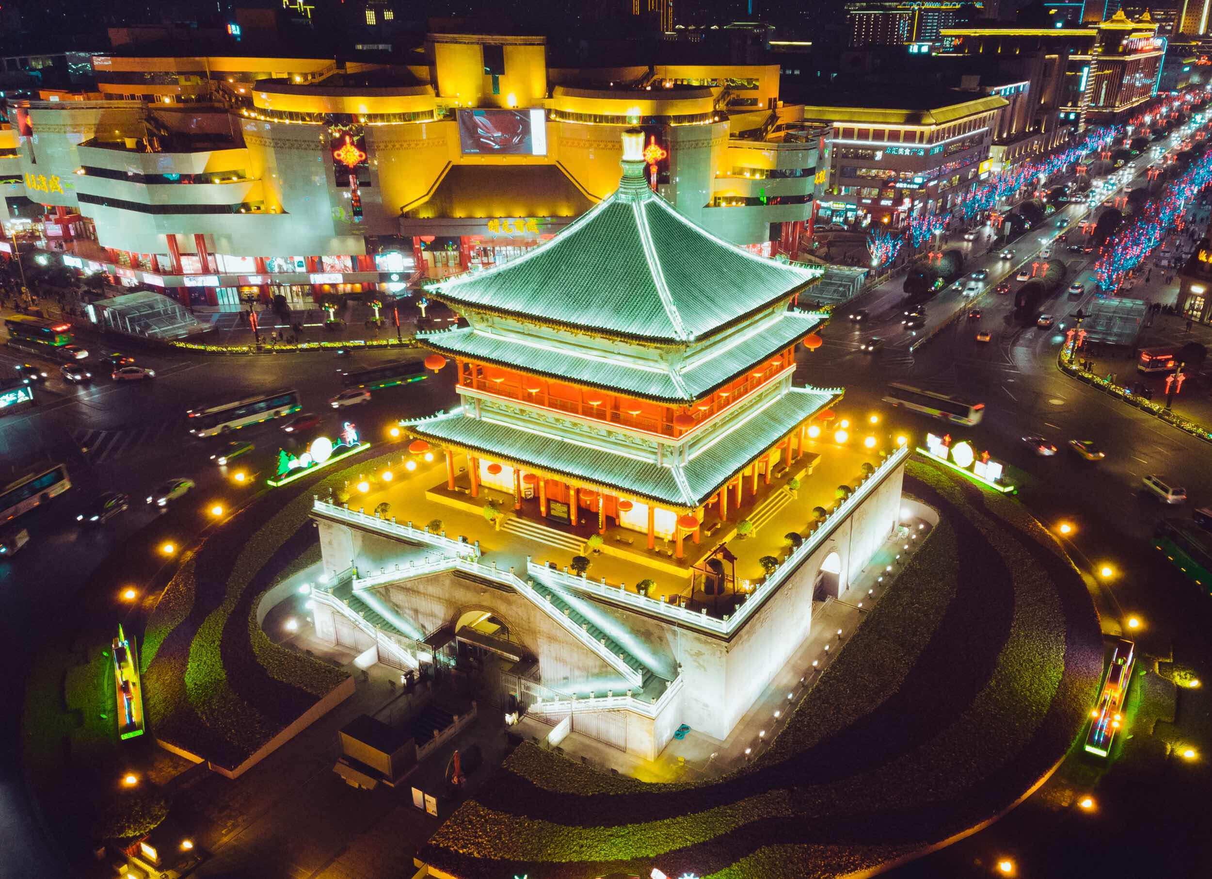 Al finalizar el trayecto de 4.5 a 5 horas en tren desde Beijing y después de registrarse en el hotel,el momento perfecto para sumergirse en la atmósfera de Xi'an es visitar este famoso paseo nocturno.