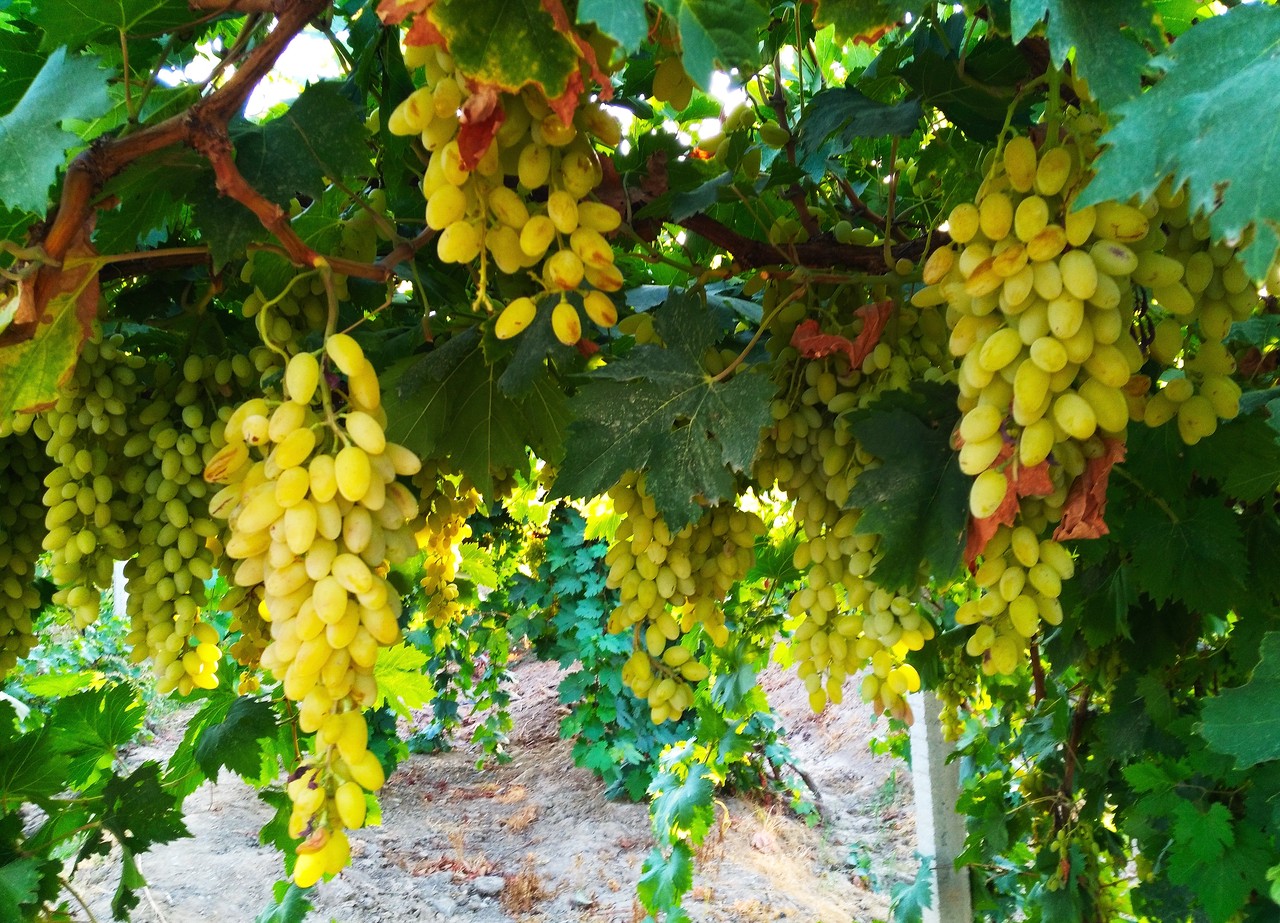Los puestos se alinean junto a las vides,ofreciendo uvas frescas,frutos secos y especialidades locales como el cordero asado y el pan naan.