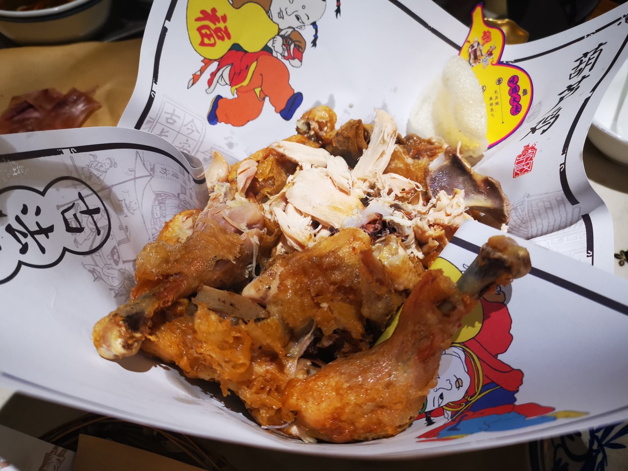 Pollo de calabaza:Este plato de la corteza de la dinastía Tang es un plato fuerte en banquetes. El pollo entero,tras varios pasos de preparación,tiene una piel dorada y crujiente,y la carne está tierna y se desprende del hueso. El pollo de calabaza de Cháng'ān Dà Pái Dàng,Zuì Cháng'ān y Xi'ān Fàn Zhuāng es muy elogiado.