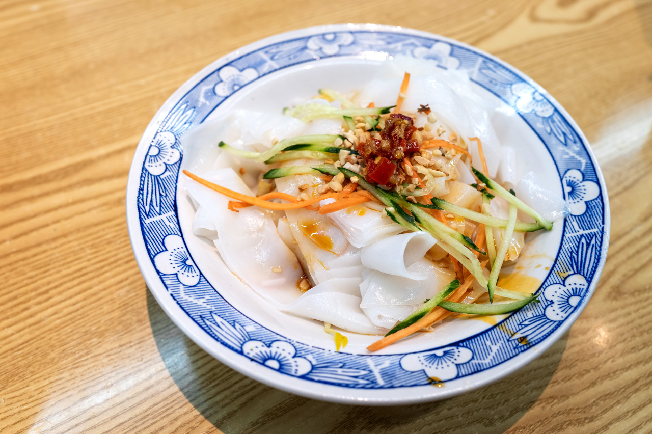 Liangpi (fideos fríos):En Xi'an,los fideos fríos pueden ser suaves (de arroz) o masticables (de trigo). Los Liangpi de salsa de sésamo de la Calle Musulmana son especiales,con su salsa de sésamo concentrada y aceite de chile picante,refrescantes y apetitosos.Wèi jiā Liáng pí,como cadena,es una opción conveniente y segura.